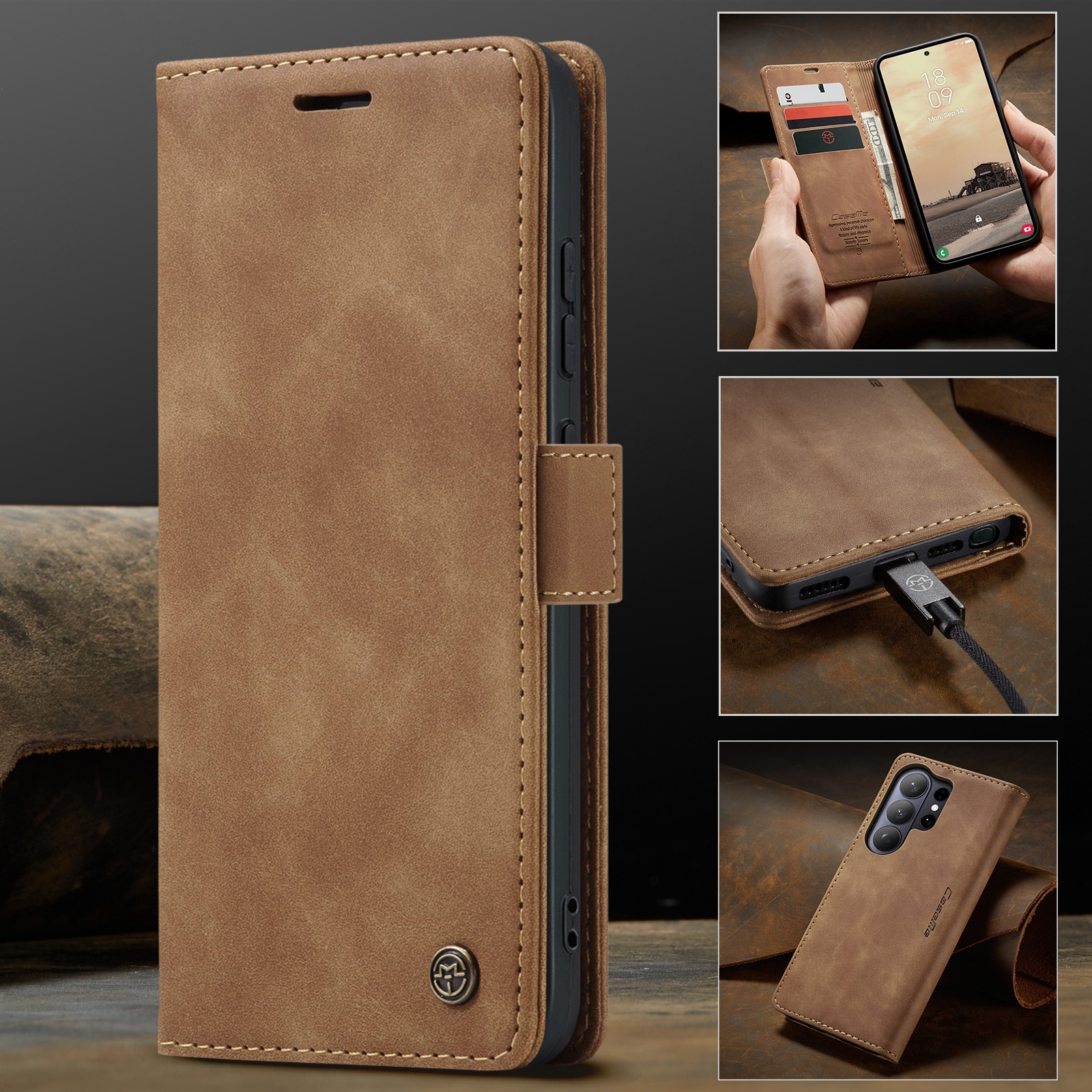 Vintage Matte PU Folio Case for S26 Plus, Brown