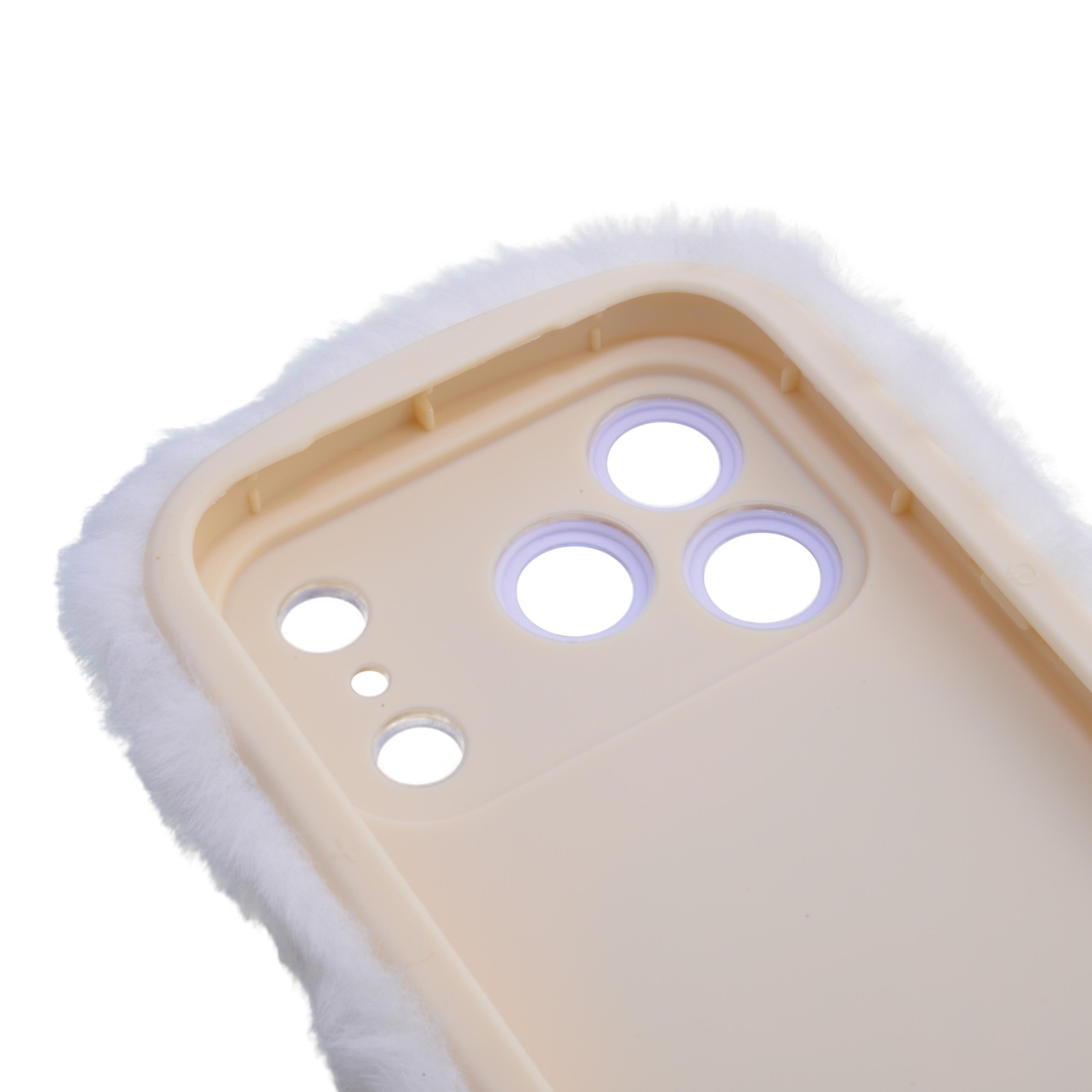 White Plush Silicone Double Heart Phone Case for iPhone 17 Pro – Soft Furry Cute Protective Cover