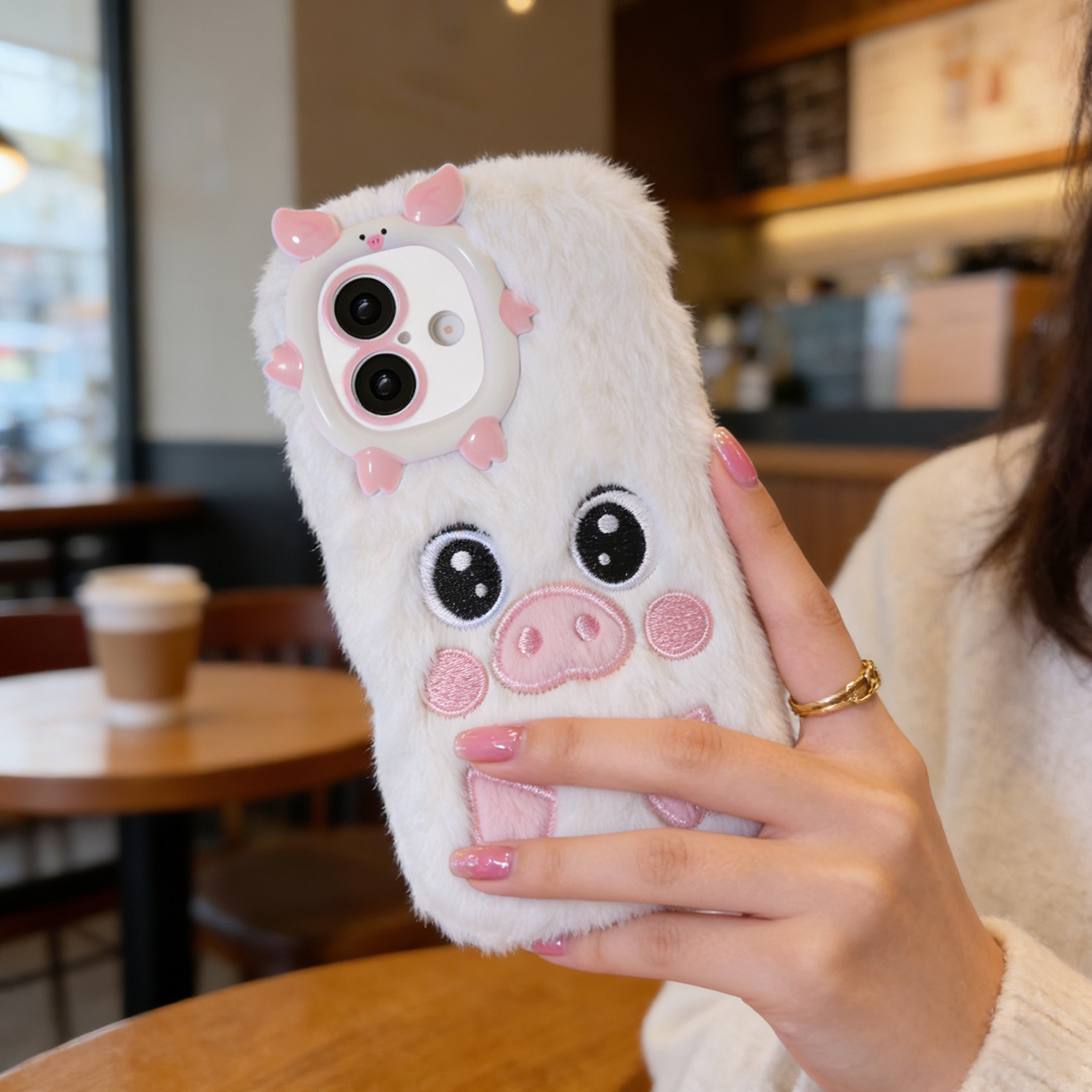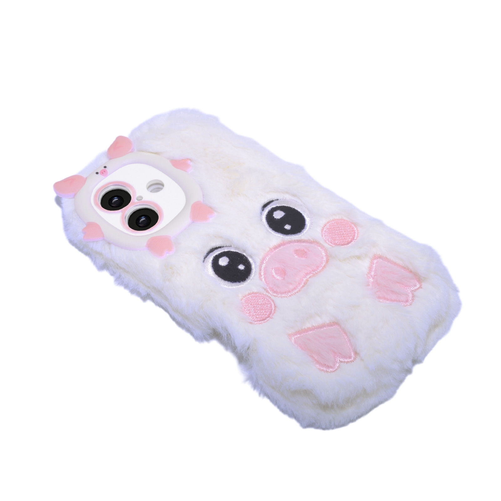 White Pig Plush Silicone Phone Case for iPhone 17 – Soft Cute Protective Cover