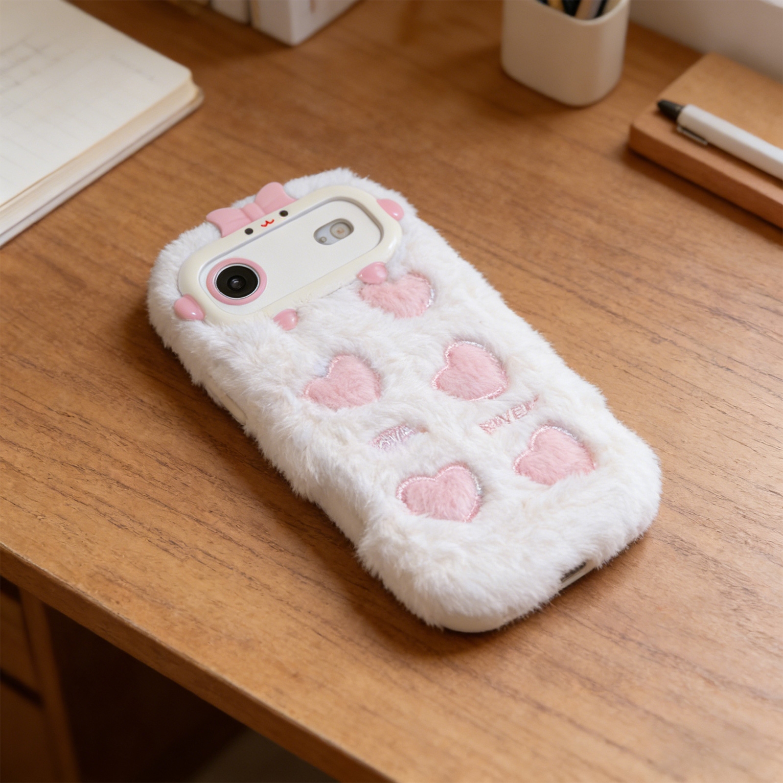 White Plush Silicone Double Heart Phone Case for iPhone Air – Soft Furry Cute Protective Cover