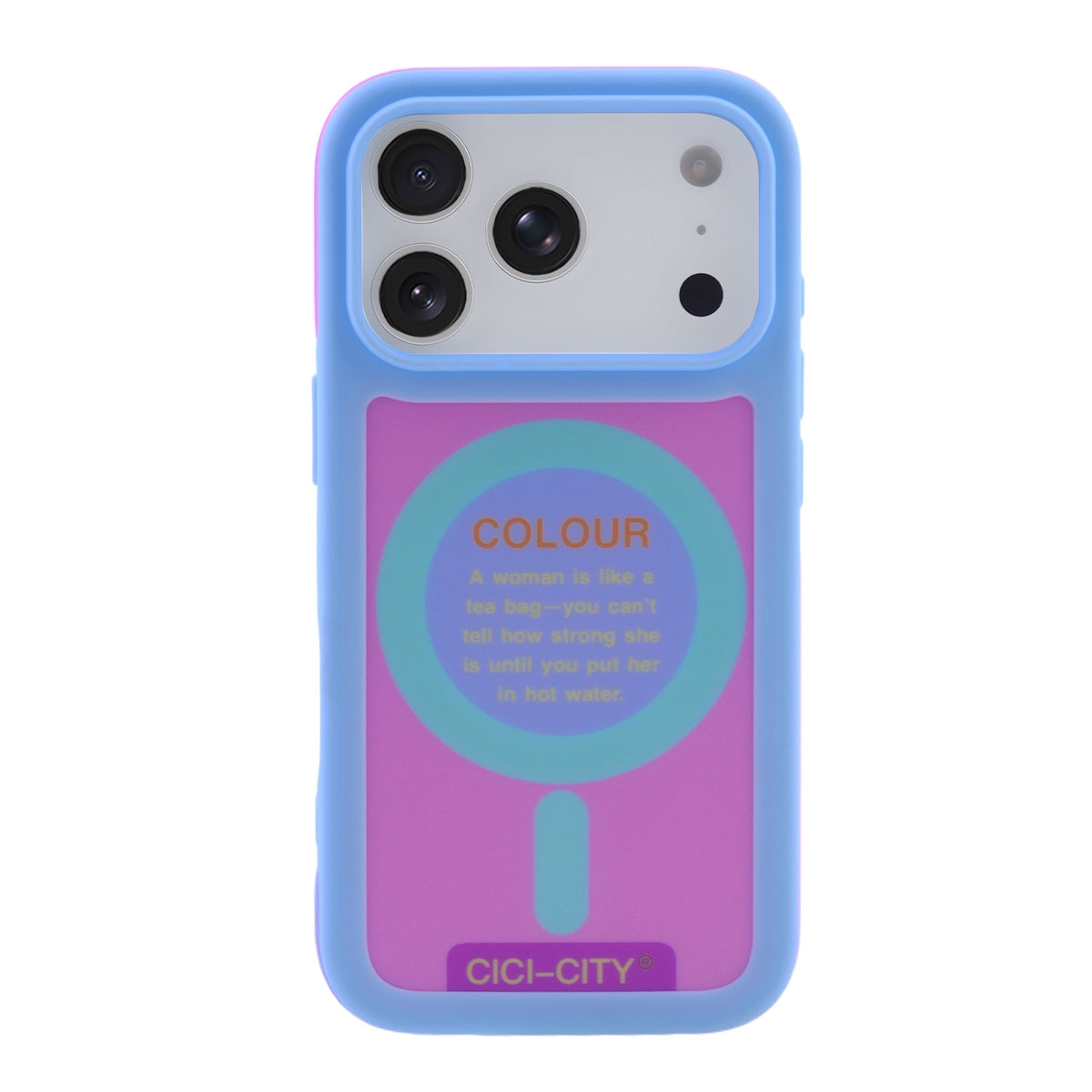 Y2K Dopamine Color Block Magnetic Case for iPhone 17 Pro, Light Blue and Light Purple